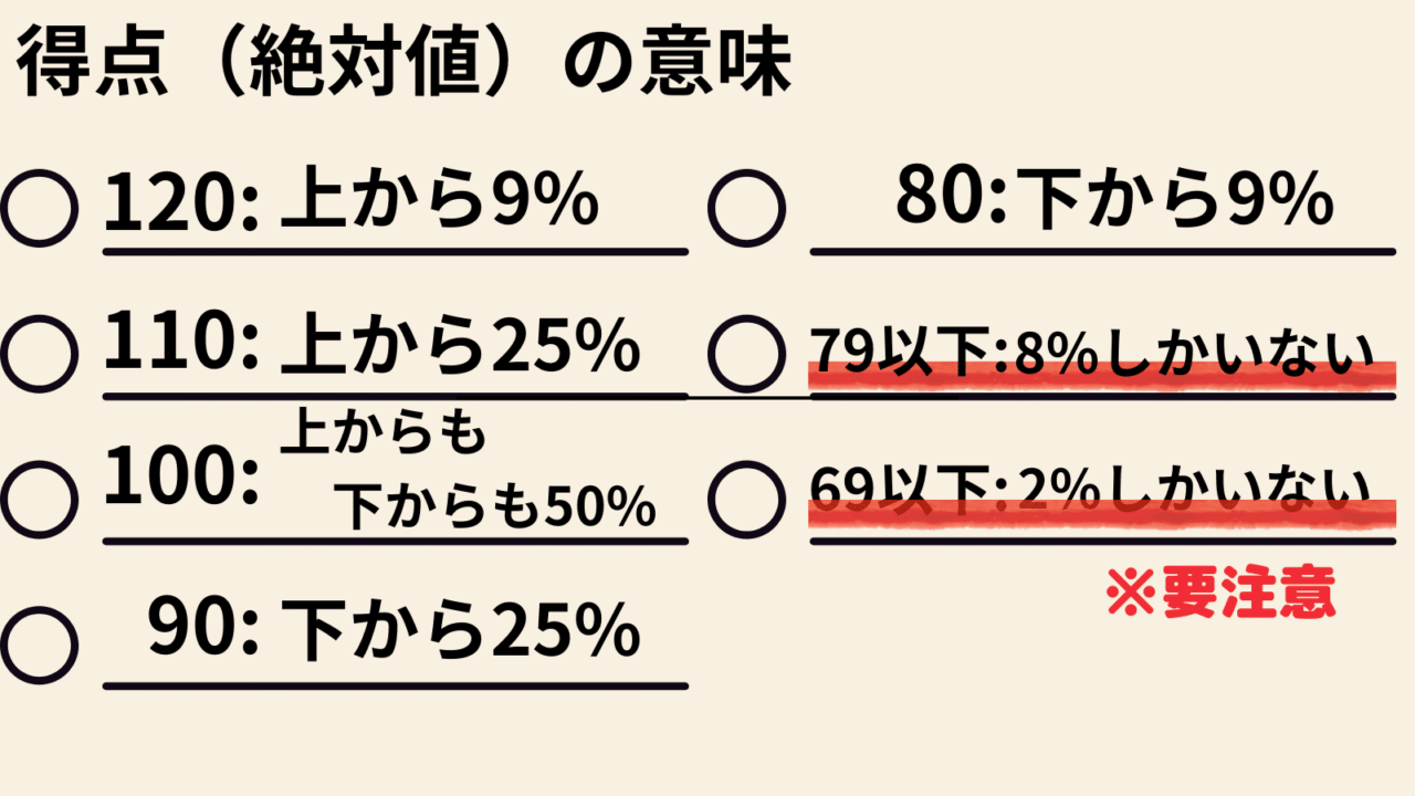 次の表は、得点(絶対値)の意味です。